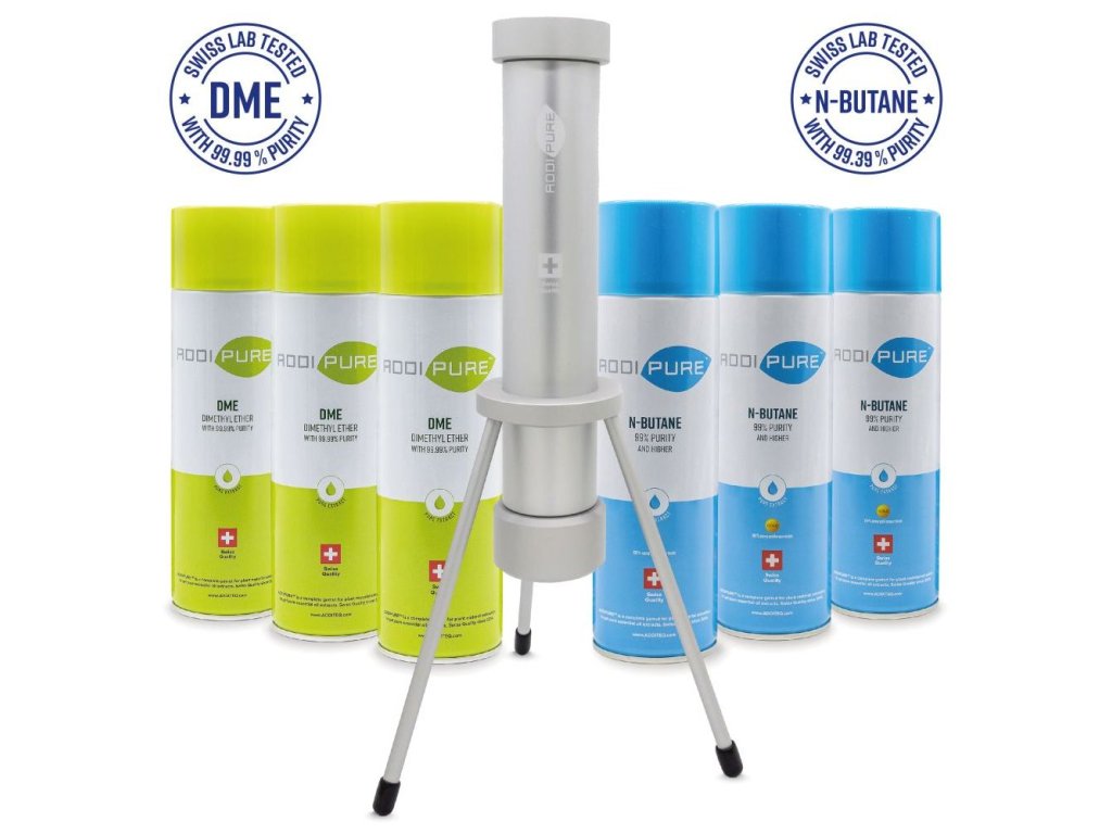Jako extrakční činidla se používají plyny n-butan (laboratorně potvrzená čistota 99,39 %) a dimethylether DME (laboratorně potvrzená čistota 99,99 %). Oba plyny jsou vyráběné v EU, šetrně k životnímu prostředí.