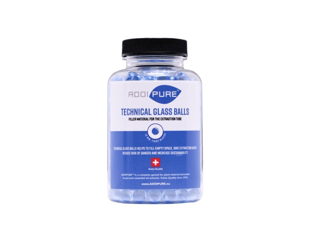 Technické skleněné kuličky se používají jako plnicí materiál pro extraktory Addipure, pokud není k dispozici dostatek rostlinného materiálu k extrakci.