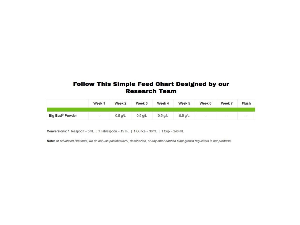 Big Bud® Powder se používá ve fázi květu v poměru 0.5 g na 1 litr vody.