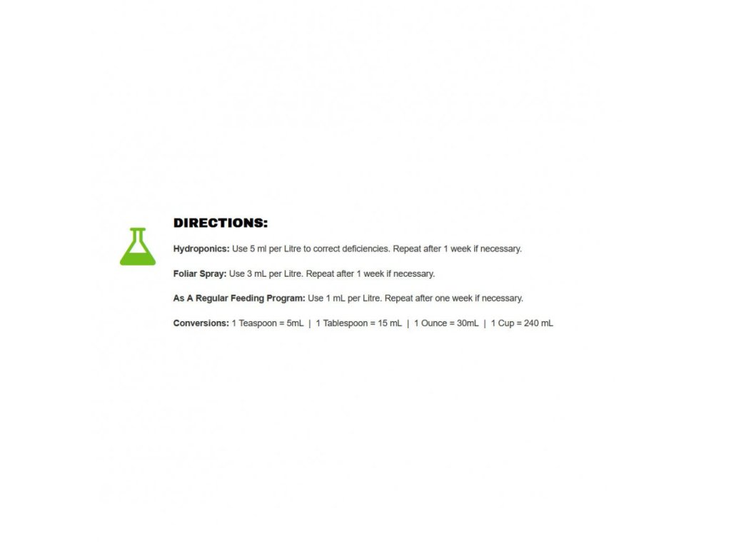 Podpůrný doplněk od Advanced Nutrients je vhodný pro každou pěstební metodu. Používá se ale v jiných poměrech. Většinou stačí jednou týdně, v případě nutnosti lze opakovat. Může mít vliv na pH nebo EC roztoku.