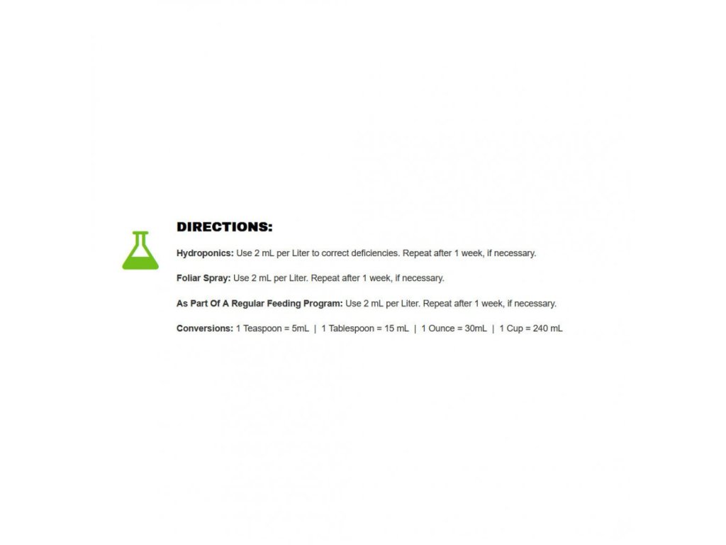Podpůrný doplněk od Advanced Nutrients je vhodný pro každou pěstební metodu. Používá se ale v jiných poměrech. Většinou stačí jednou týdně, v případě nutnosti lze opakovat. Může mít vliv na pH nebo EC roztoku.
