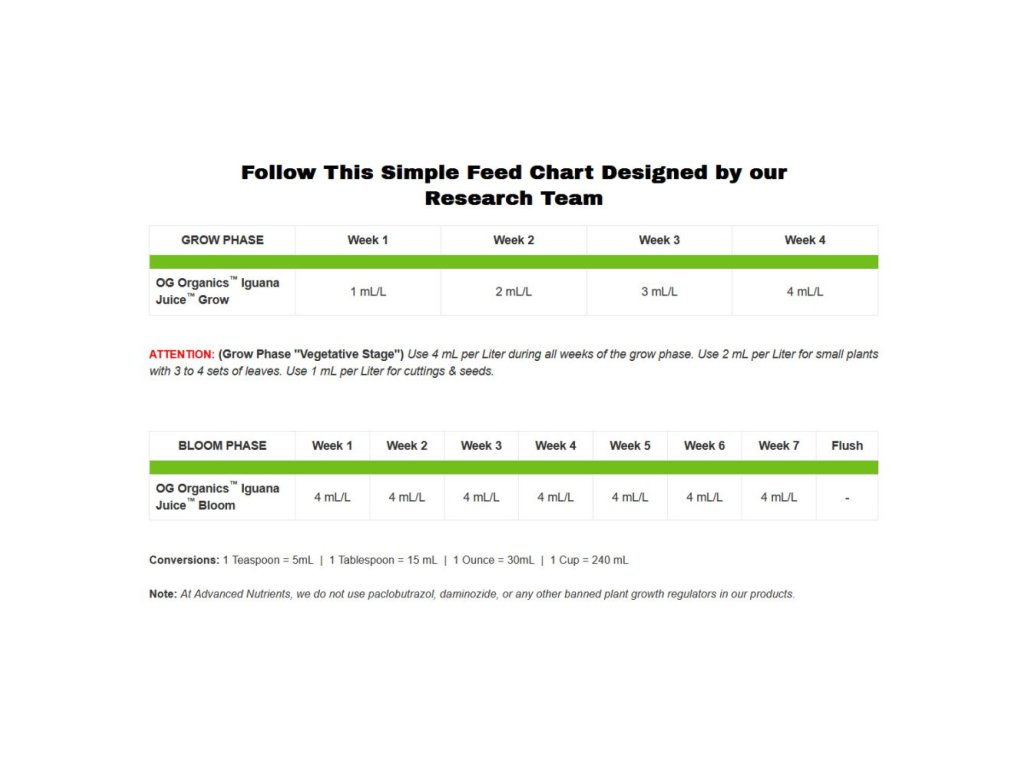 Květové hnojivo od Advanced Nutrients se míchá s vodou v poměru 4 ml na 1 litr vody. Používá se od prvního týdne květu.