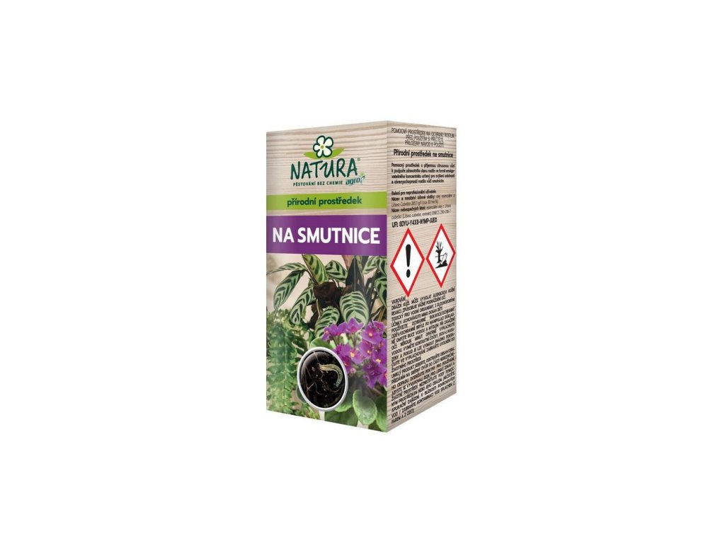 NATURA Na smutnice je přírodní přípravek s UNIKÁTNÍ RECEPTUROU na bázi přírodních látek s příjemnou citrusovou vůní, který zamezí výskytu mušek smutnic. Larvy se po aplikaci přestanou vyvíjet; dospělci do ošetřené zeminy už nová vajíčka nekladou.
