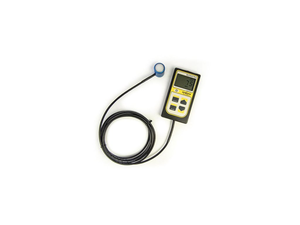 Měřič světelné účinnosti, Apogee Instruments MQ-500, je profesionální PAR/PPFD metr, vhodný pro měření LED osvětlení. Vybaven LCD displejem, externí sondou, výstupem dat do PC. Made in USA. Měřič má manuální a protokolový režim a zaznamenává integrovaný denní součet v mol × m^(-2) × d^(-1). Vzorový režim ukládá až 99 měření.