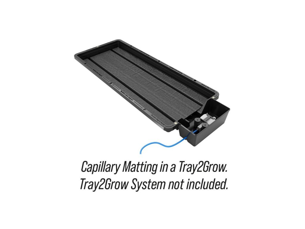 Kapilární rohož odvádí vlhkost ze zásobníku až ke kořenům rostlin nad ním. Vždy ji používejte s fólií Tray2Grow pro kontrolu kořenů nahoře.