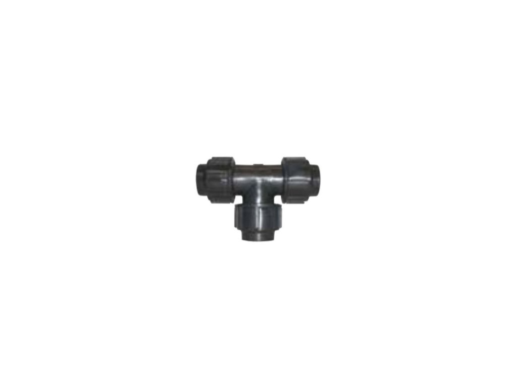 PE díl pro závlahu, který slouží jako T rozvod hadic o průměru 20 mm.
