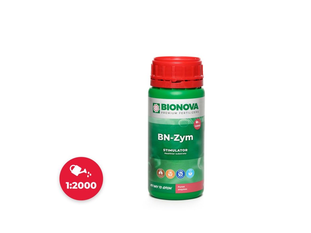 Přírodní urychlovač BioNova BN-Zym napomáhá k lepšímu prostředí v pěstebním médiu. Obsahuje specifické enzymy, které zvyšují bakteriální aktivitu při přetváření živin a minerálů na ihned vstřebatelné látky.