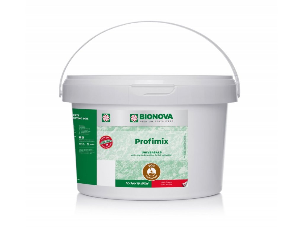 Bio směs BioNova ProfiMix je určena hlavně pro pěstitele, kteří si rádi míchají vlastní zeminový mix. Tato sofistikovaná směs obsahuje velké množství půdních organismů jako jsou: bentonit, kostní moučka, moučka z peří, výpalky, magnezit, měkké vápno, mořská řasa, vitamíny, enzymy, aminokyseliny, huminové kyseliny, bakterie a plísně, kvasinky a 70 - 80 přirozeně chelatované stopové prvky.
