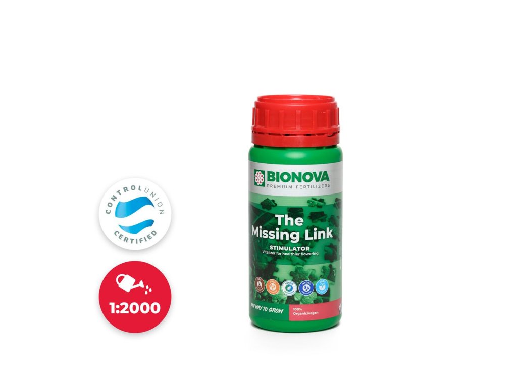 Stimulátor BioNova The Missing Link ochraňuje rostliny před škodlivými vnějšími vlivy, stimuluje přirozený obranný systém rostliny a prokazatelně zajišťuje vyšší výnosy. Univerzální přísada se používá po celý pěstební cyklus.
