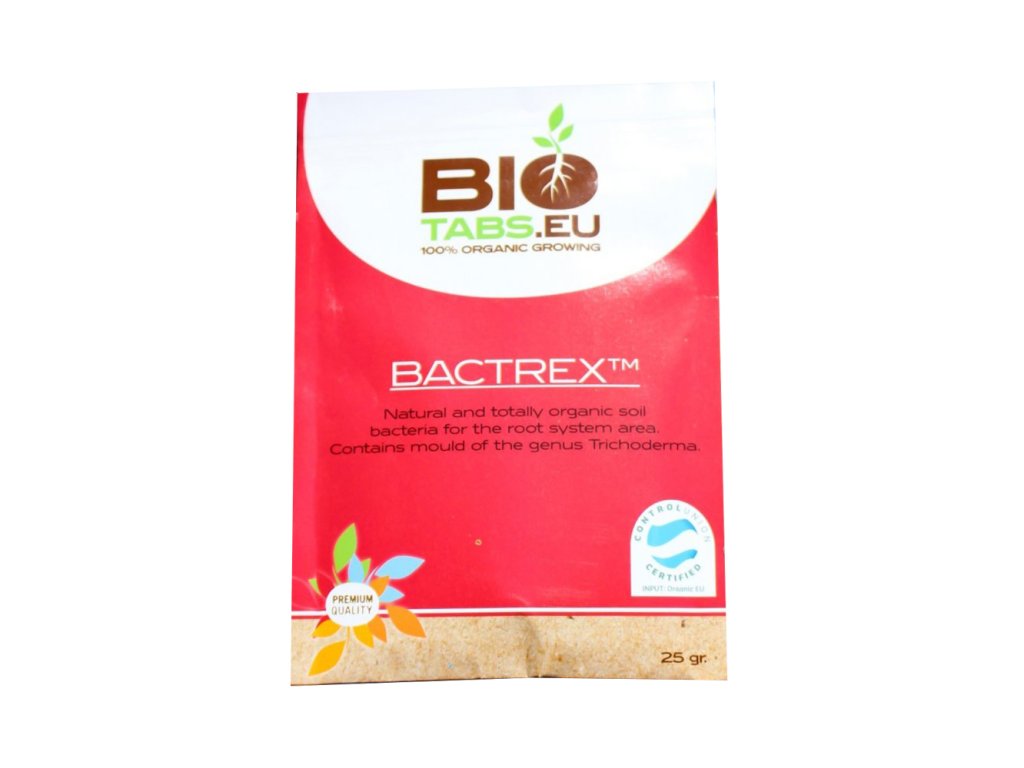 Bactrex od Biotabs tvoří organická směs huminové kyseliny, trichodermy a osmi druhů prospěšných bakterií. Půdní bakterie získávají energii z mrtvých kořenových buněk nebo zbytkových organických materiálů. Kořenové Rhizobakterie zvyšují rozpustnost fosforu, draslíku nebo vápníku. Při masivním rozvoji kořenového systému se skvěle doplňují s mykorhiza (Mycorrhizae) houbami.