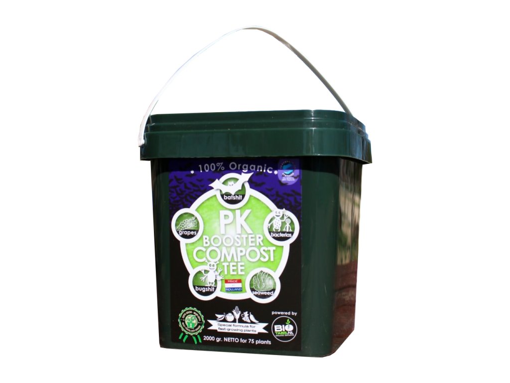 Koncentrovaný organický kompost Biotabs PK Booster Compost Tea je vhodný pro indoor i outdoor pěstování bylinek. Kromě netopýřího trusu je součástí extrakt z mořských řas a hlavně užitečné bakterie. Tyto bakterie uvolňují fosfor a draslík.