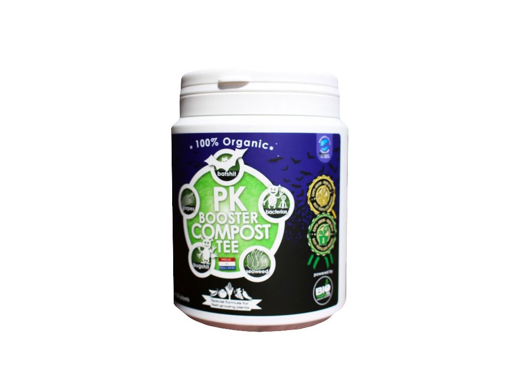 Koncentrovaný organický kompost Biotabs PK Booster Compost Tea je vhodný pro indoor i outdoor pěstování bylinek. Kromě netopýřího trusu je součástí extrakt z mořských řas a hlavně užitečné bakterie. Tyto bakterie uvolňují fosfor a draslík.