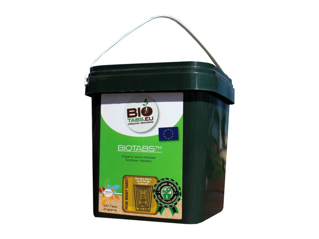 Biotabs Tablety tvoří směs pomalu se uvolňujících živin, huminokyselin, půdních bakterií a několika druhů mouček (kostní, krevní, péřová). Pěstební substrát je díky nim živější, zdravější a rostlinám vytváří ideální podmínky pro silný růst a bohatý květ. Poměr NPK je 15-7-8.