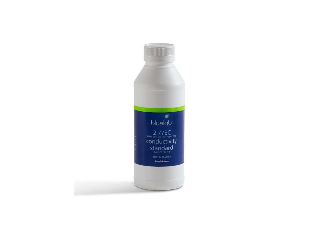 Standardní roztok pro vodivost Bluelab 2.77 EC - 500 ml je nezbytný pro použití se všemi EC produkty Bluelab.