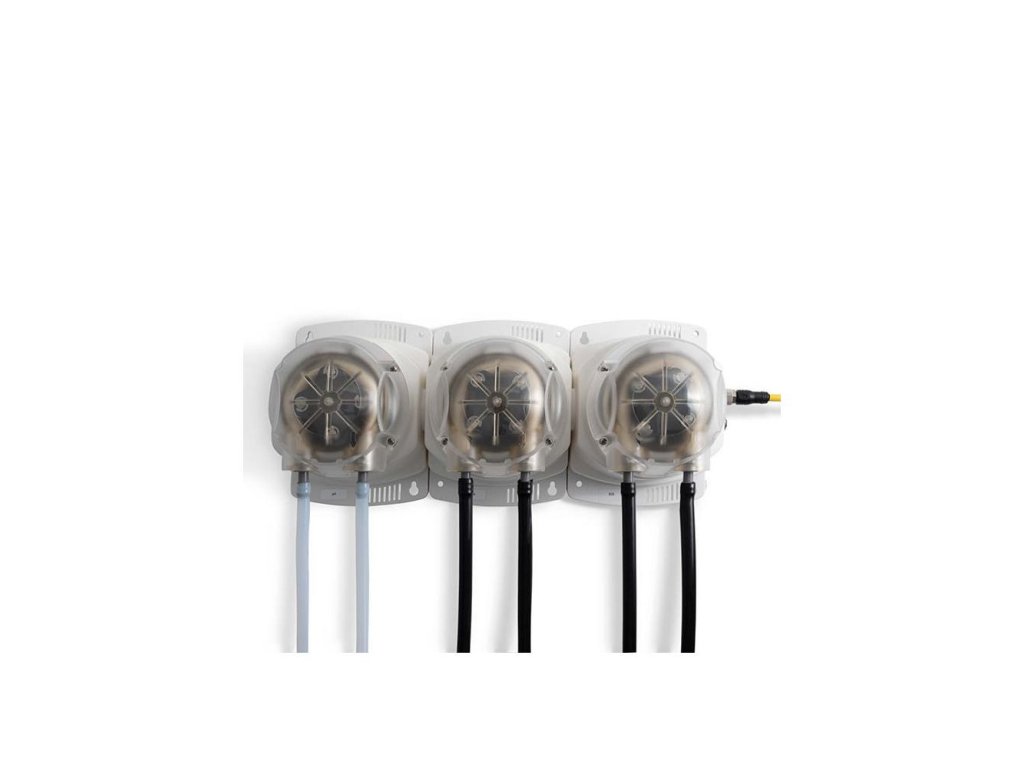 - Peristaltická čerpadla pro přesné a konzistentní dávkování živin a pH do nádrží.