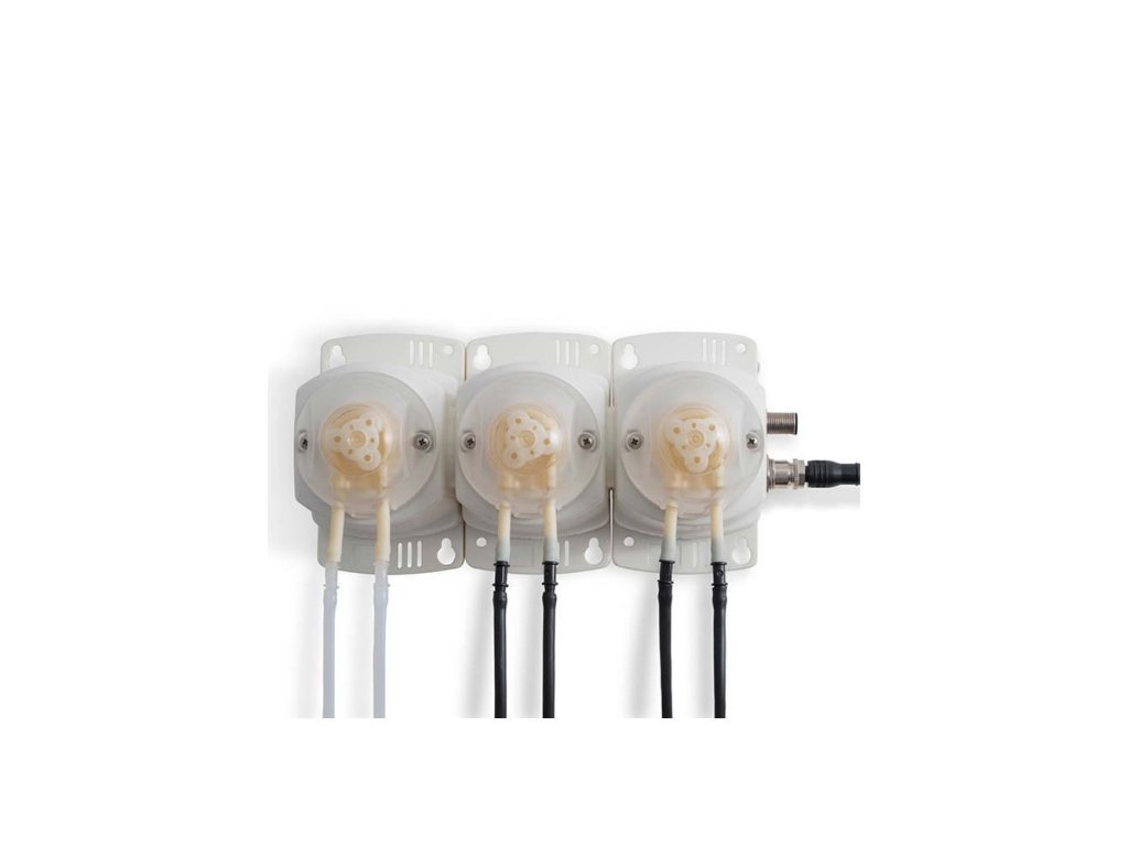 - Peristaltická čerpadla pro přesné a konzistentní dávkování živin a pH do nádrží.