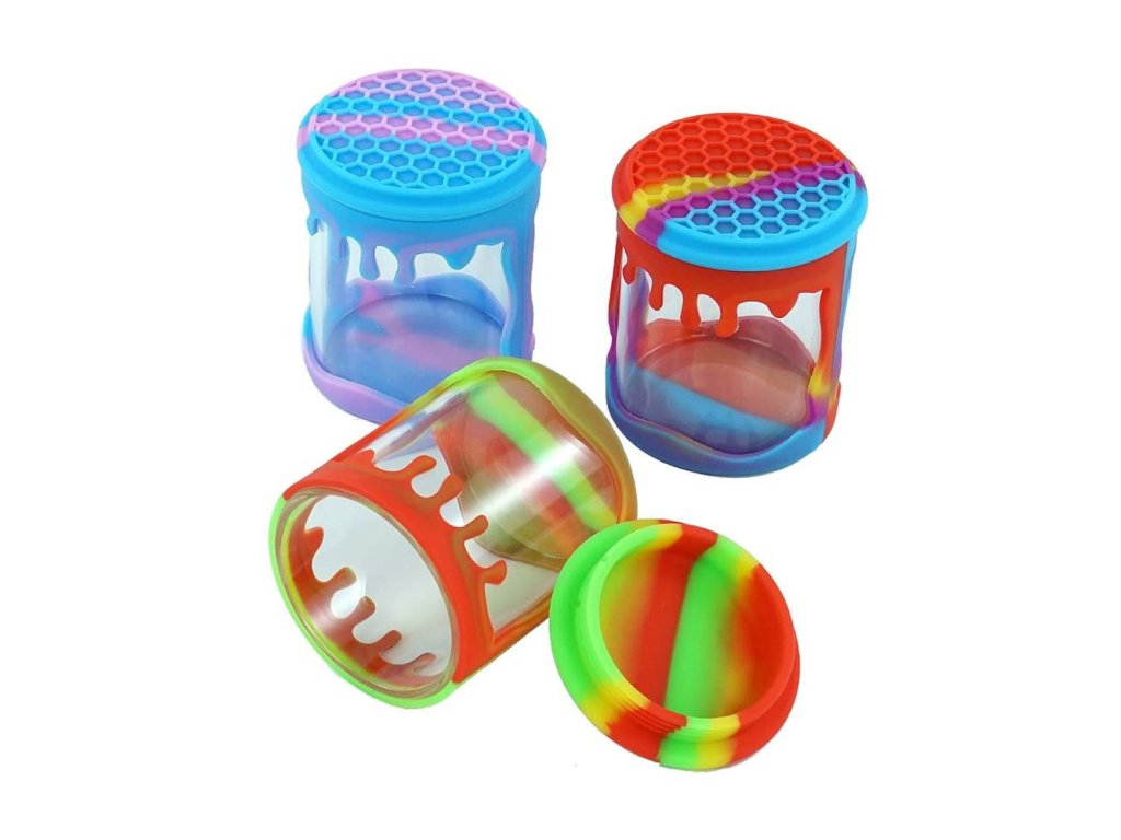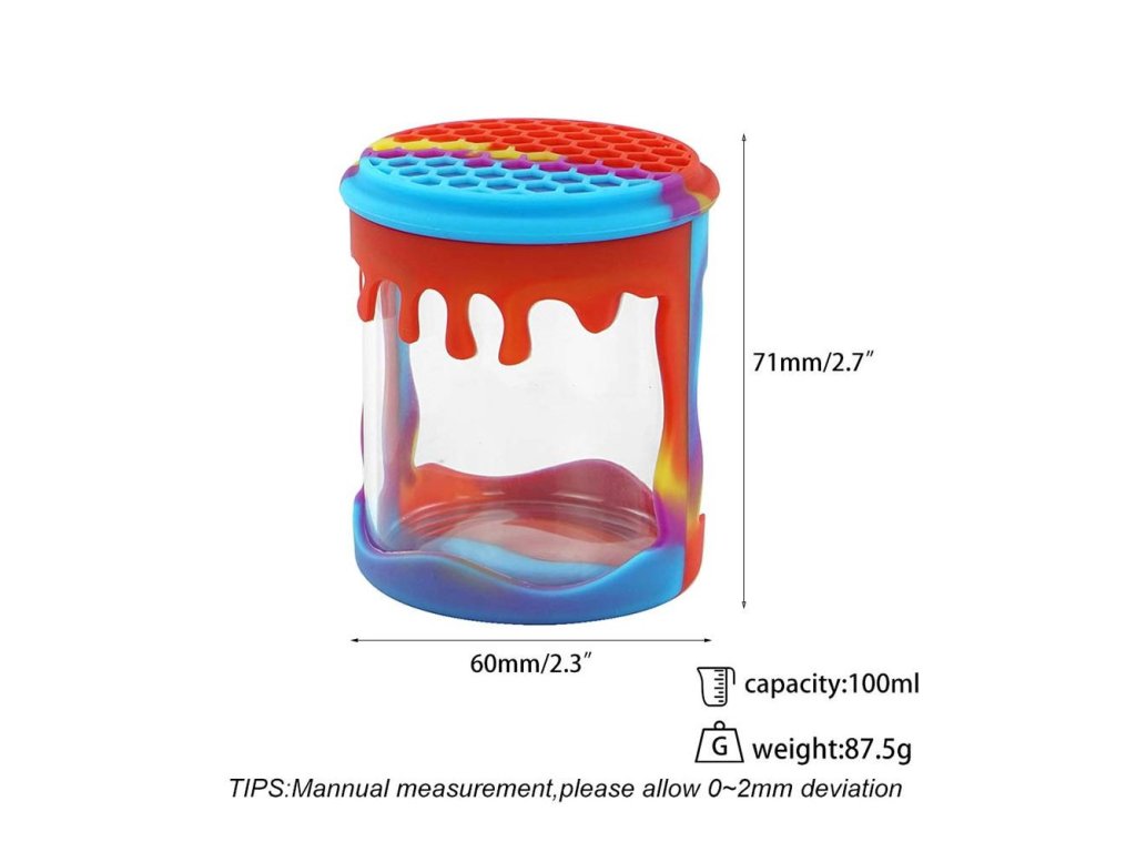 Bongthai Silicone Glass průhledná nádobka 100 ml s barevným dnem a víkem. Hodí se na práci s extrakty a výtažky.