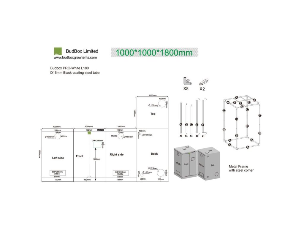 Specifikace BudBox White PRO L180 100x100x180 cm
