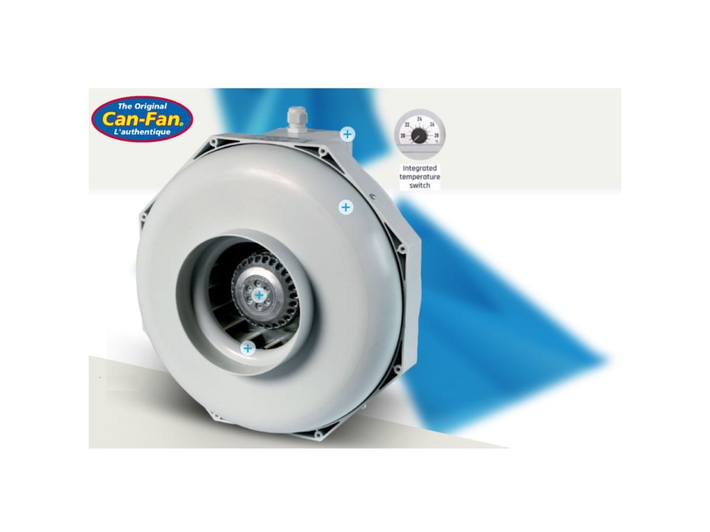Plastový potrubní ventilátor s regulací Can Fan RKW-L 160 je také vybaven tepelnou pojistkou, která ho chrání před přehřátím. Ovládání rychlosti je dosaženo navíjecími kohoutky, a proto nedochází k žádnému šumu.