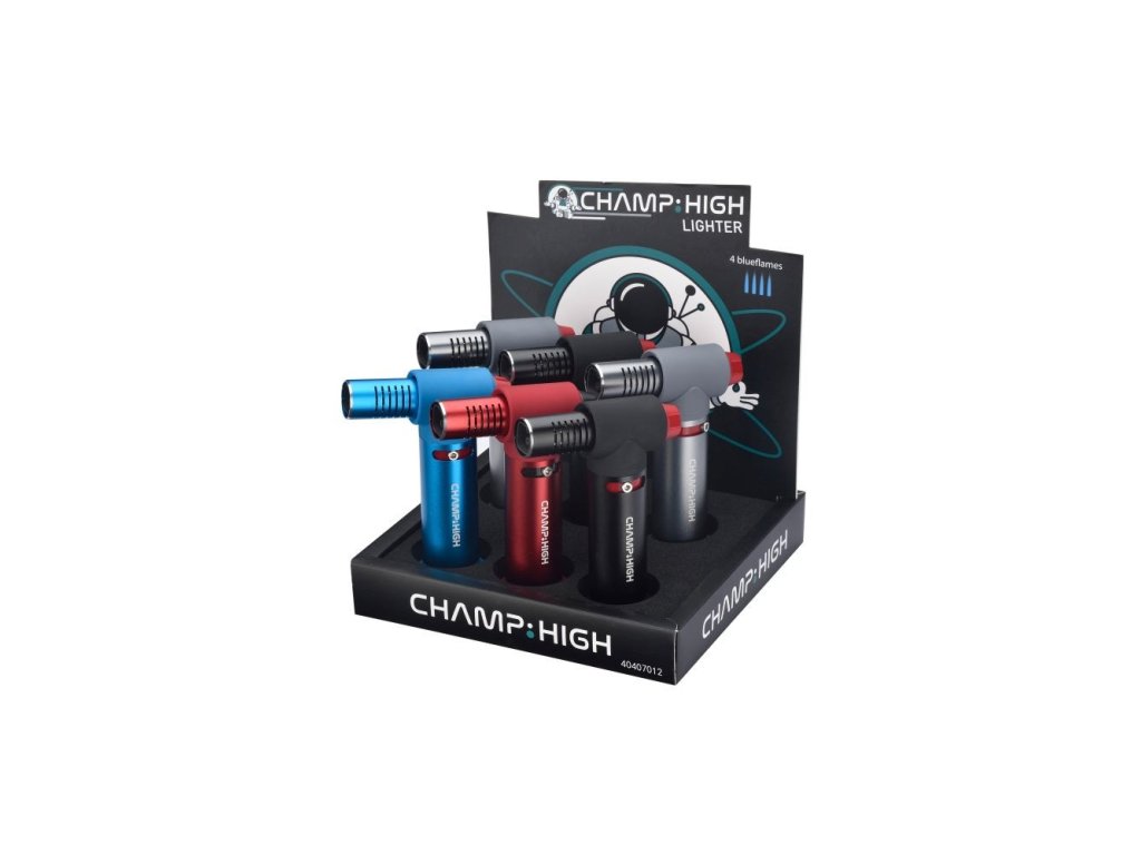 Výkonný příruční zapalovač se 4 plameny. Hořák s butanem Champ High Lighter Jet Flame lze po vyčerpání náplně snadno doplnit.