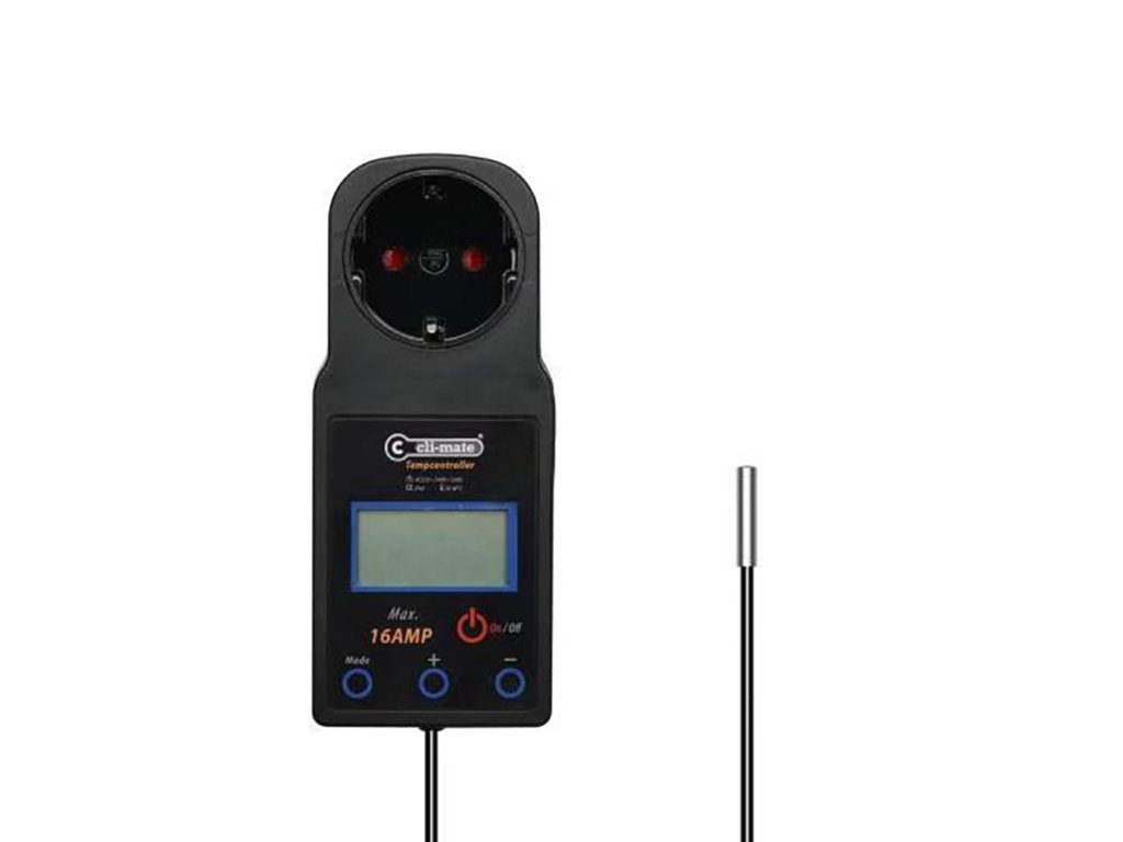 Snadno ovladatelný a jednoduchý controller CLI-MATE Temperature je určen pro regulaci teploty v pěstební místnosti prostřednictvím topení (zvýšení) nebo ventilátoru (snížení).