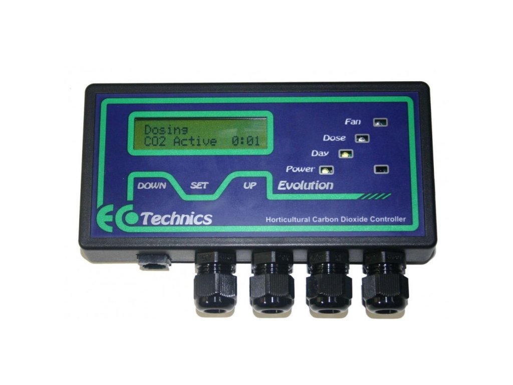 CO2 monitor a regulátor EcoTechnics Evolution je kompatibilní s CO2 láhvemi i zařízeními spalujícími propan nebo butan. Široce programovatelný controller spolupracuje s většinou externích regulátorů, termostatů a hygrostatů. Díky tomu můžete bylinkám zajistit dokonalé podmínky pro silný růst, voňavý květ a velký plod.