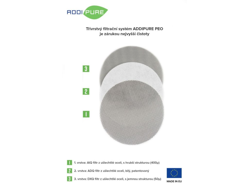 ADDITEQ spolupracuje s nejlepšími švýcarskými a evropskými inženýry a designéry na rozvoji produktů ADDIPURE při využití nejmodernějších technologií. ADDITEQ se zavázala, že bude vyvíjet a vyrábět nejlepší přístroje pro extrakci z rostlinného materiálu v Evropě, které umožňují získat nejčistší extrakty éterických olejů. Řada produktů ADDIPURE PEO line je koncipována tak, aby zajistila jednoduše a účinně získat čistý extrakt.