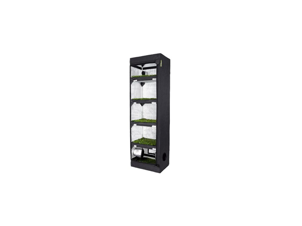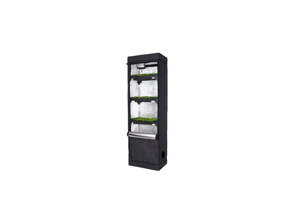 Vícepatrový stan Garden High Pro Probox Propagator L o celkových rozměrech 60x40x200 cm nabízí v pěti patrech pěstební plochu 1.2 m2. Ideální pro microgreens, řízky, sazenice. Kapacita až 720 rostlinek.