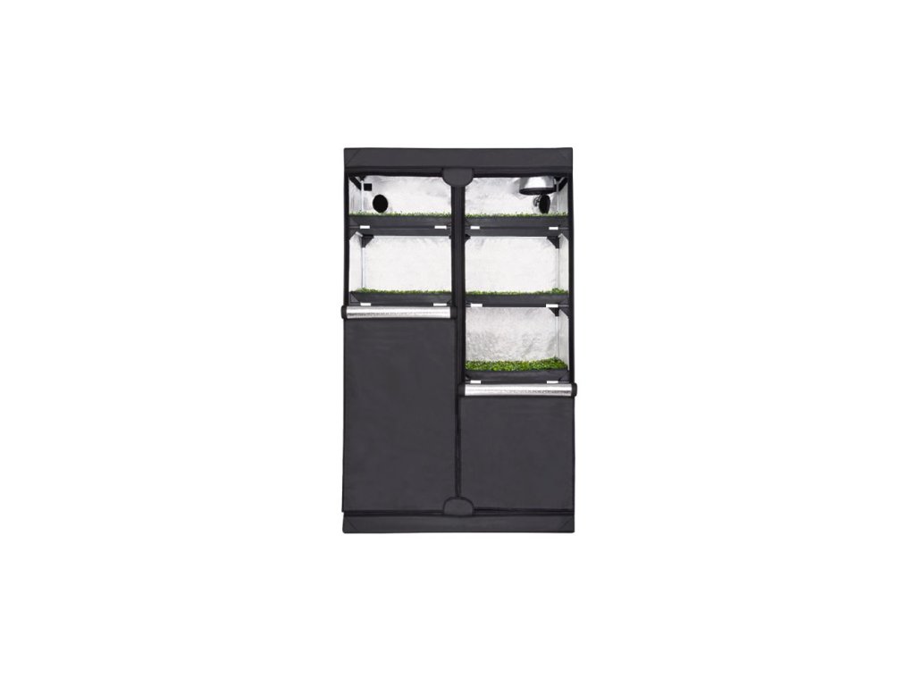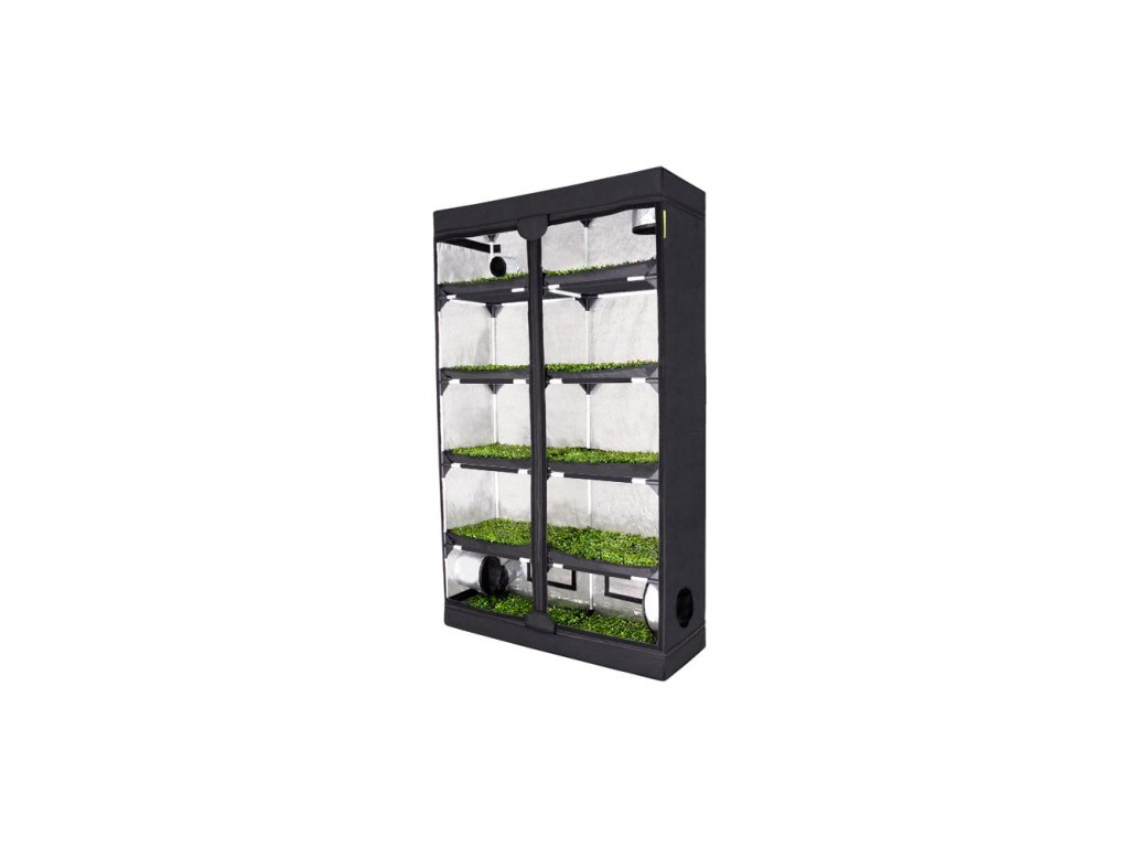 Vícepatrový stan Garden High Pro Probox Propagator XL o celkových rozměrech 120x40x200 cm nabízí v pěti patrech pěstební plochu 2.4 m2. Ideální pro microgreens, řízky, sazenice. Kapacita až 1440 rostlinek.