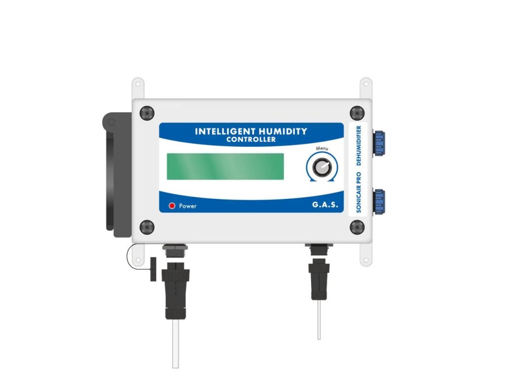 Inteligentní regulátor vlhkosti G.A.S. Dual monitoruje prostředí v pěstební místnosti a řídí úroveň vlhkosti na VPD (deficit tlaku par) nebo relativní vlhkost, a to prostřednictvím ovládání zvlhčovačů i odvlhčovačů.