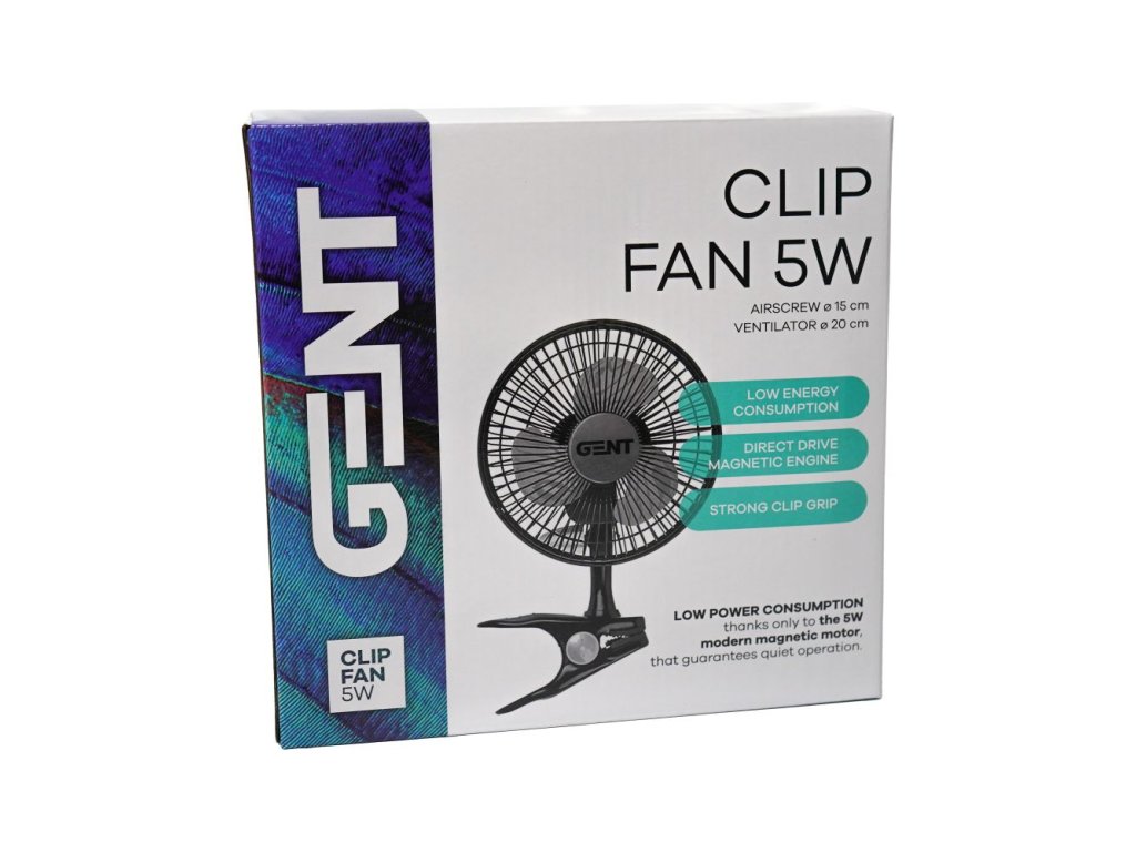 Malý klipsnový ventilátor GENT s příkonem 5W slouží k cirkulaci vzduchu v pěstebním prostoru. Větráček s magnetickým motorem má vrtuli o průměru 15 cm (celá hlava 20 cm). Je vybaven 130 cm dlouhým kabelem. Hodí se nejen při indoor pěstování v growboxu, využijete ho i při běžném domácím použití nebo v kanceláři v horkých dnech.