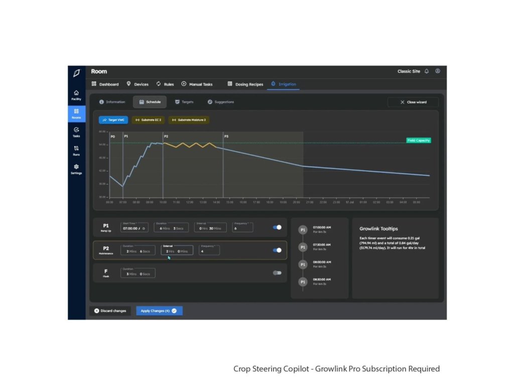 - Přesná data o stříškách: Sleduje substrát, klima a světlo, aby bylo možné lépe reagovat na správu plodin a zdraví rostlin.