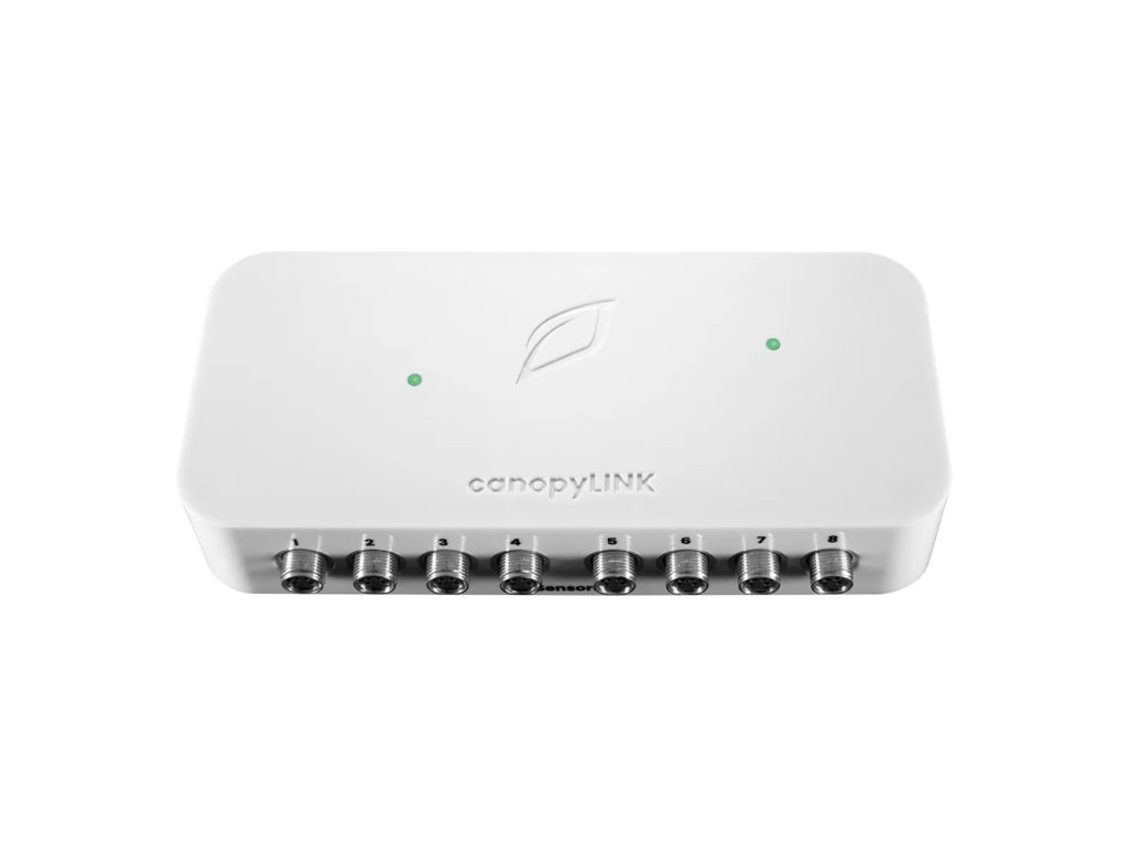 CanopyLINK připojuje až osm senzorů, včetně senzorů substrátu Terralink a klimatických senzorů Climalink, k systému Growlink prostřednictvím HUB nebo Wi-Fi. Zjednodušuje sběr dat o substrátu, klimatu a světle, což umožňuje přesné řízení a optimalizaci růstu plodin.