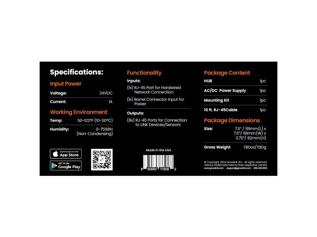 Komunikační rozbočovač 8portový řadič. HUB propojuje více zařízení LINKS v rámci systému Growlink a zajišťuje bezproblémové a spolehlivé ovládání vašeho pěstebního prostředí. Je zkonstruován pro jednoduchost a škálovatelnost a umožňuje vám spravovat váš pěstební prostor s přesností a lehkostí.