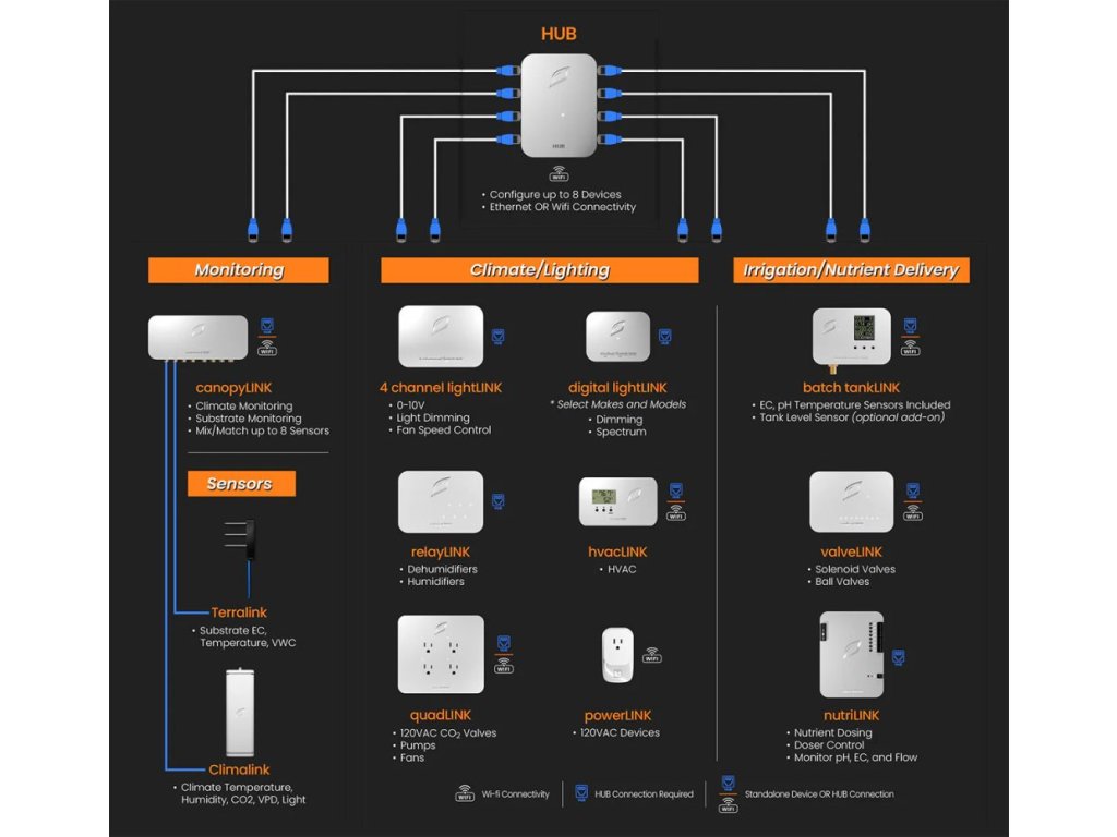 - Bezproblémová integrace systému Copilot: Spolupracuje přímo se systémem Copilot společnosti Growlink a automatizuje řízení plodin pro efektivní růst rostlin a využívání zdrojů.