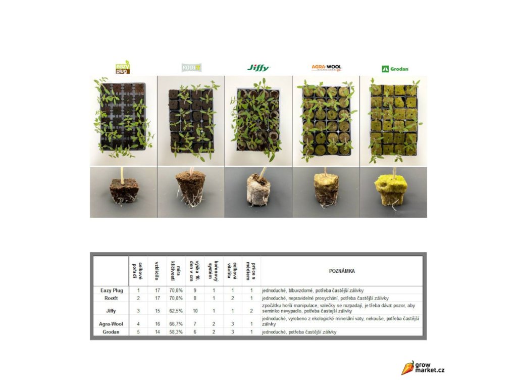 | Tvar sadbovacího média: | kostka |