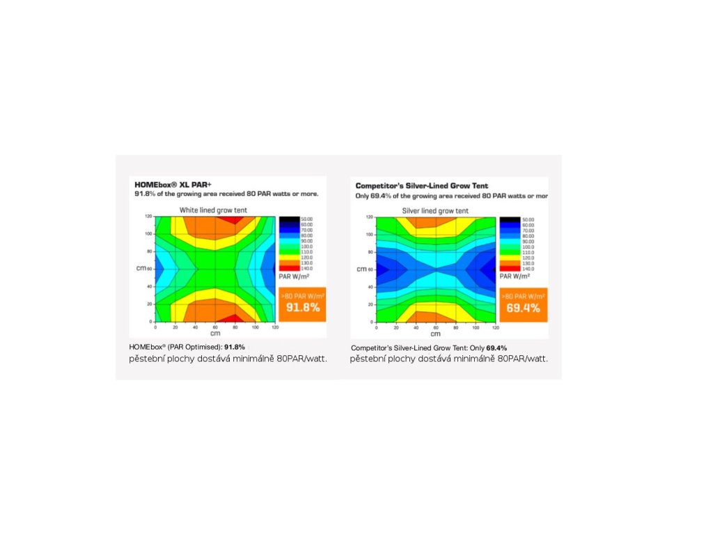 - Vnitřní PAR+ fólie excelentně odráží světlo, zvyšuje účinnost osvětlení a zkvalitňuje vývoj rostlin.