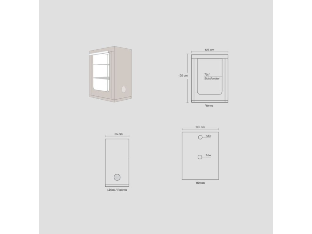 Malý neprůsvitný grow box lze snadno rozdělit na víc pěstebních pater pomocí mřížek, které jsou součástí balení. Rozměry stanu Homebox Vista Medium 125x65x120 cm jsou ideální pro menší hydroponické systémy. Nejvhodnější je využít ho jako propagátor, stan pro mladé rostlinky. Pěstební stan je kompatibilní i s normálními květináči, podmiskami a sadbovači.