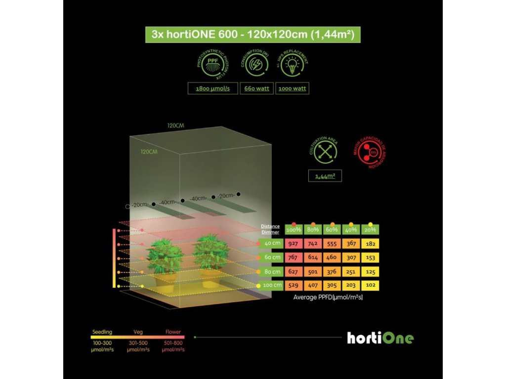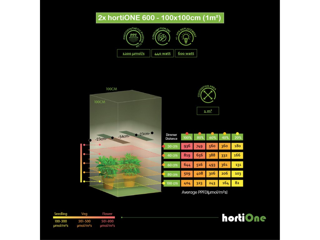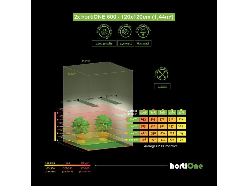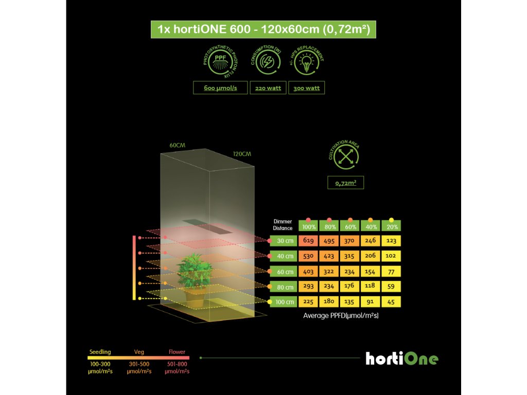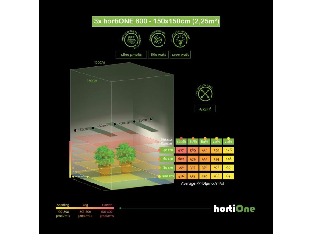Součástí HortioONE svítidla je driver, který neumožňuje žádnou regulaci osvětlení. HortiOne LED je navíc kompatibilní s dimmerem stejné značky, který umožňuje regulaci až 3 svítidel najednou. Bluetooth dimmer, který lze ovládat ručně i automaticky, není součástí produktu.