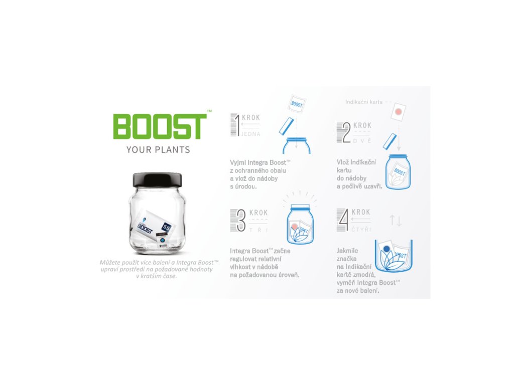 - Integra Boost neslouží jako médium na sušení rostlin, ale pro oboustrannou kontrolu vlhkosti.