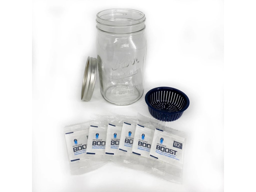 Sada obsahuje skleněnou dózu o objemu 946 ml + 6x Integra Boost 4g 62% + plastový držák na sáčky. Dokonalá kontrola vlhkosti pro skladované bylinky a potraviny.