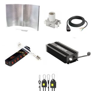 Stan i vzduchotechniku už máte a potřebujete jen kompletní lampu na bylinky? Komplety osvětlení na indoor pěstování zahrnují bezpečný předřadník, spolehlivou výbojku a kompletní stínidlo s objímkou a kabelem.