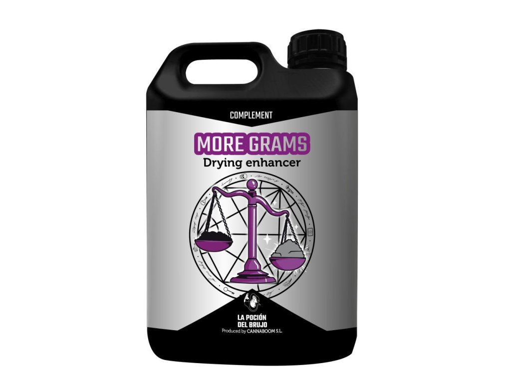 More Grams je světově unikátní přípravek díky kterému ztrácejí plodiny v procesu sušení méně na hmotnosti. Funguje tak, že zvyšuje retenci vody v květu, opětovně hydratuje prostor mezi vlákny a umožňuje asimilaci této vody bohaté na živiny v závěrečné fázi kvetení. Je vhodný pro pěstování v každém substrátu.