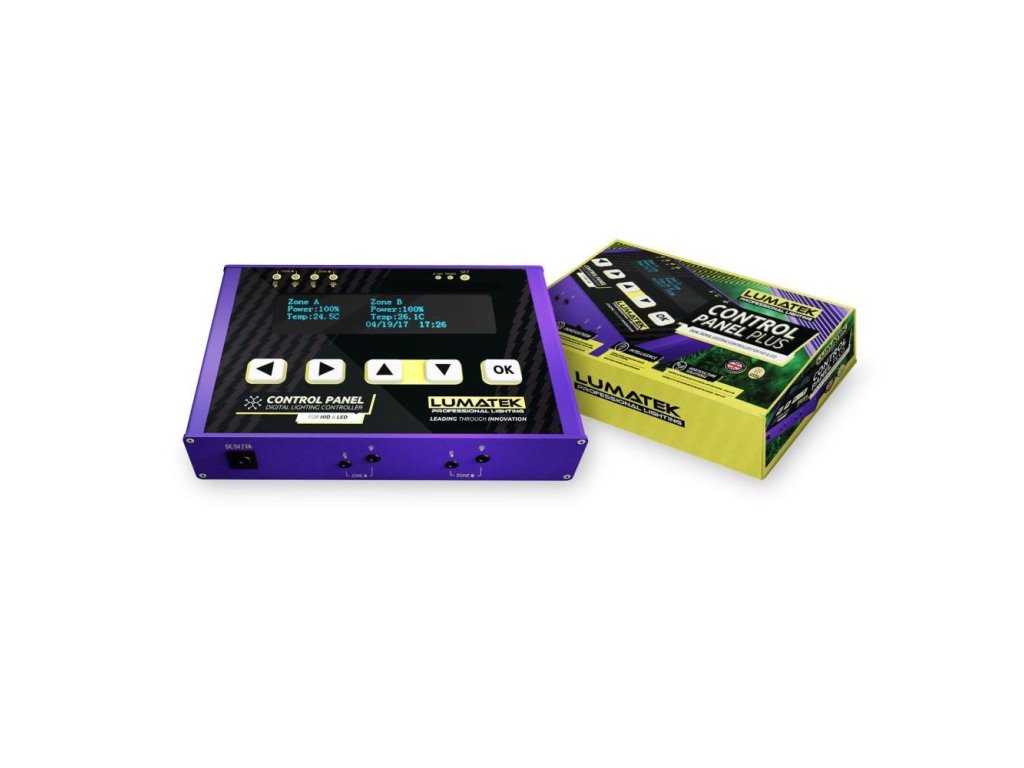 Digitální ovládací panel Lumatek Digital Panel Plus 2.0 nabízí přesné ovládání všech svítidel Lumatek Controllable. Inovativní technologie umožňuje profesionálním i hobby pěstitelům detailně monitorovat prostředí a podle toho nastavit plodinám co nejlepší světelné podmínky.