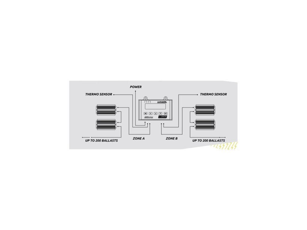 - jeden kanál dokáže ovládat zónu s až 200 HID nebo 50 LED svítidly