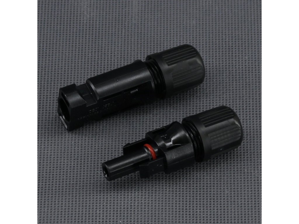 Jeden pár konektorů pro profesionální připojení, nebo propojení solárních fotovoltaických panelů. Vodotěsné provedení, spojení konektoru zacvaknutím. Montáž vodiče na konektor pájením, nebo krimpovacími kleštěmi.