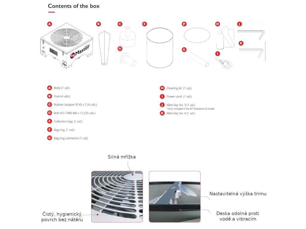 Elektrický trimmer MT Standard 50 zvládne i ty nejtěžší pracovní podmínky. Střihač je vybaven 2 výškově nastavitelnými čepelemi. Je vhodný pro mokrý trim s produkcí až 9 kg/h. Záruka 5 let.