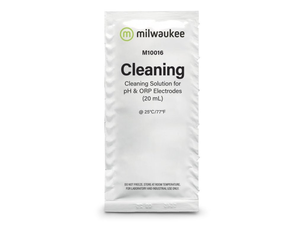 Roztok na čištění elektrod je ideální pro čištění všech sond pH, ORP a TDS měřičů. K udržení vysokého výkonu a přesnosti každé elektrody je nutné pravidelné čištění, aby se odstranily usazeniny a nečistoty na skleněném nebo uhlíkovém povrchu snímací sondy. K prodloužení životnosti elektrody měřicího přístroje použijte přípravek M10016B.