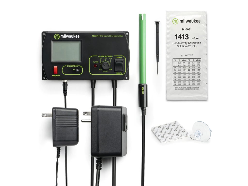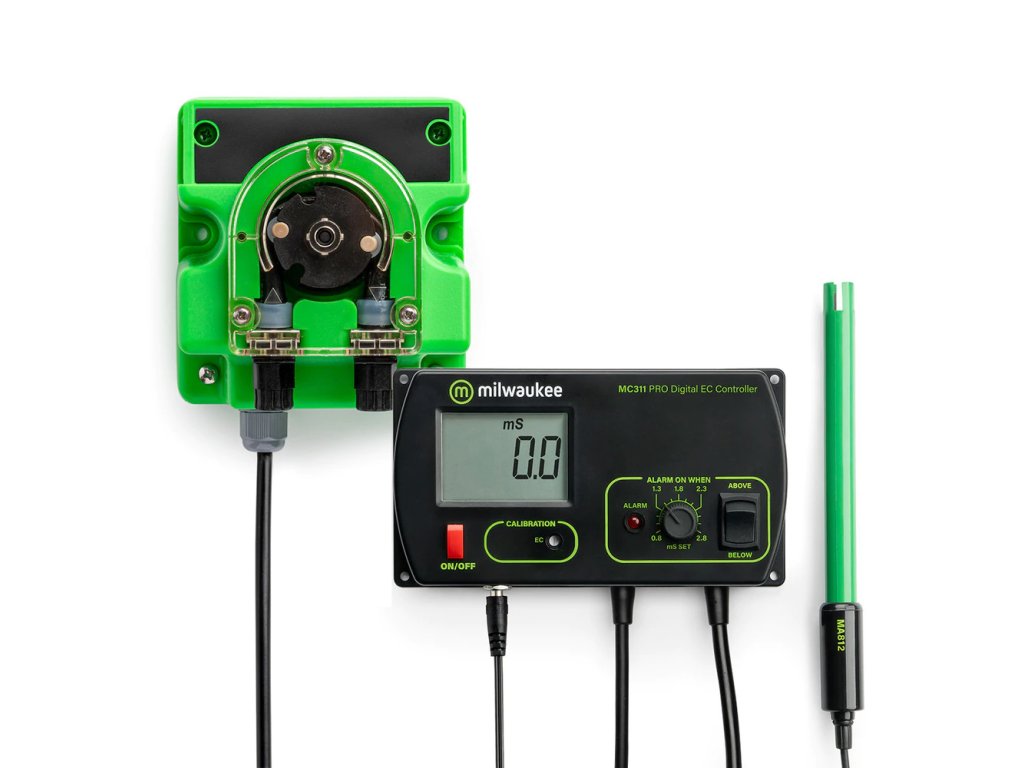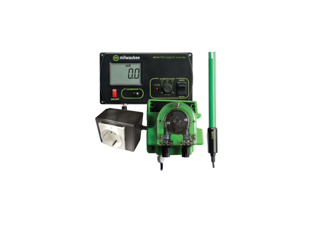 EC controller Milwaukee MC740 zajistí automatické živení a udržování optimální EC hodnoty. Sada obsahuje řídící jednotku MC311 a dávkovací čerpadlo MP810.