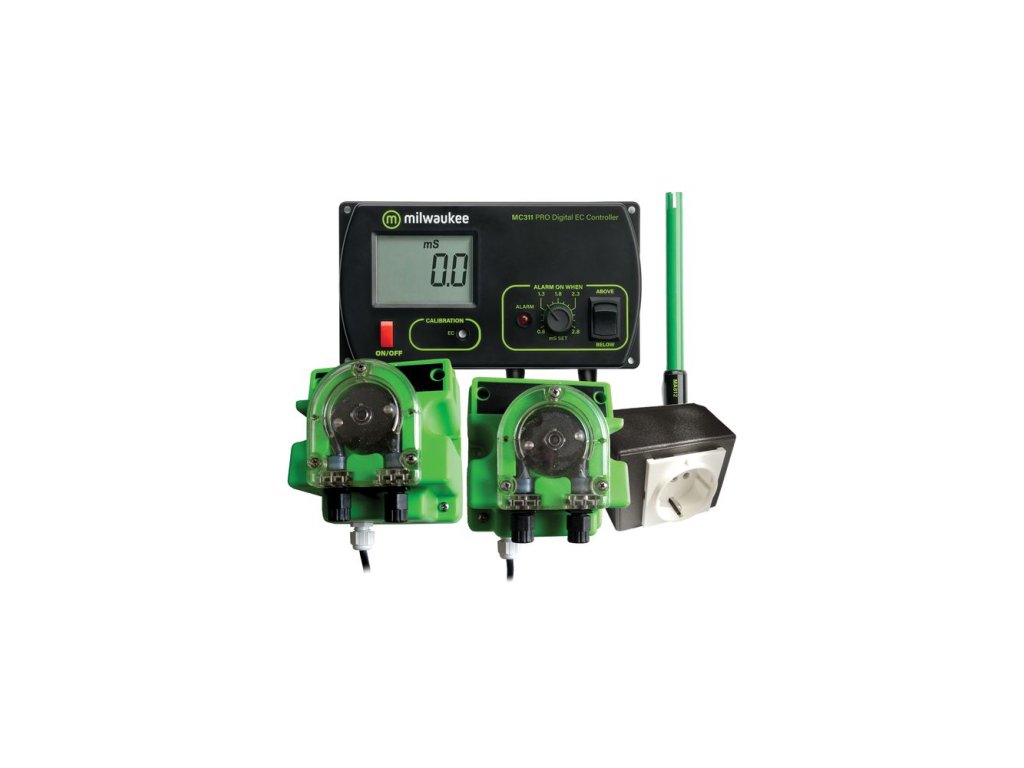 Sada Milwaukee MC745 se hodí především profesionálním pěstitelům plodin, speciálně těm, kteří využívají při pěstování dvousložková hnojiva A+B. Kit obsahuje EC controller MC311 a dvě čerpadla. Zařízení nepřetržitě monitoruje EC hodnotu živného roztoku. Pokud je nižší nebo vyšší než nastavená, spustí se vizuální alarm a čerpadlo dodá hnojivo přímo do zálivky v nádrži. Požadovaná hodnota EC se rychle obnoví a rostliny budou mít neustále ideální množství živin.
